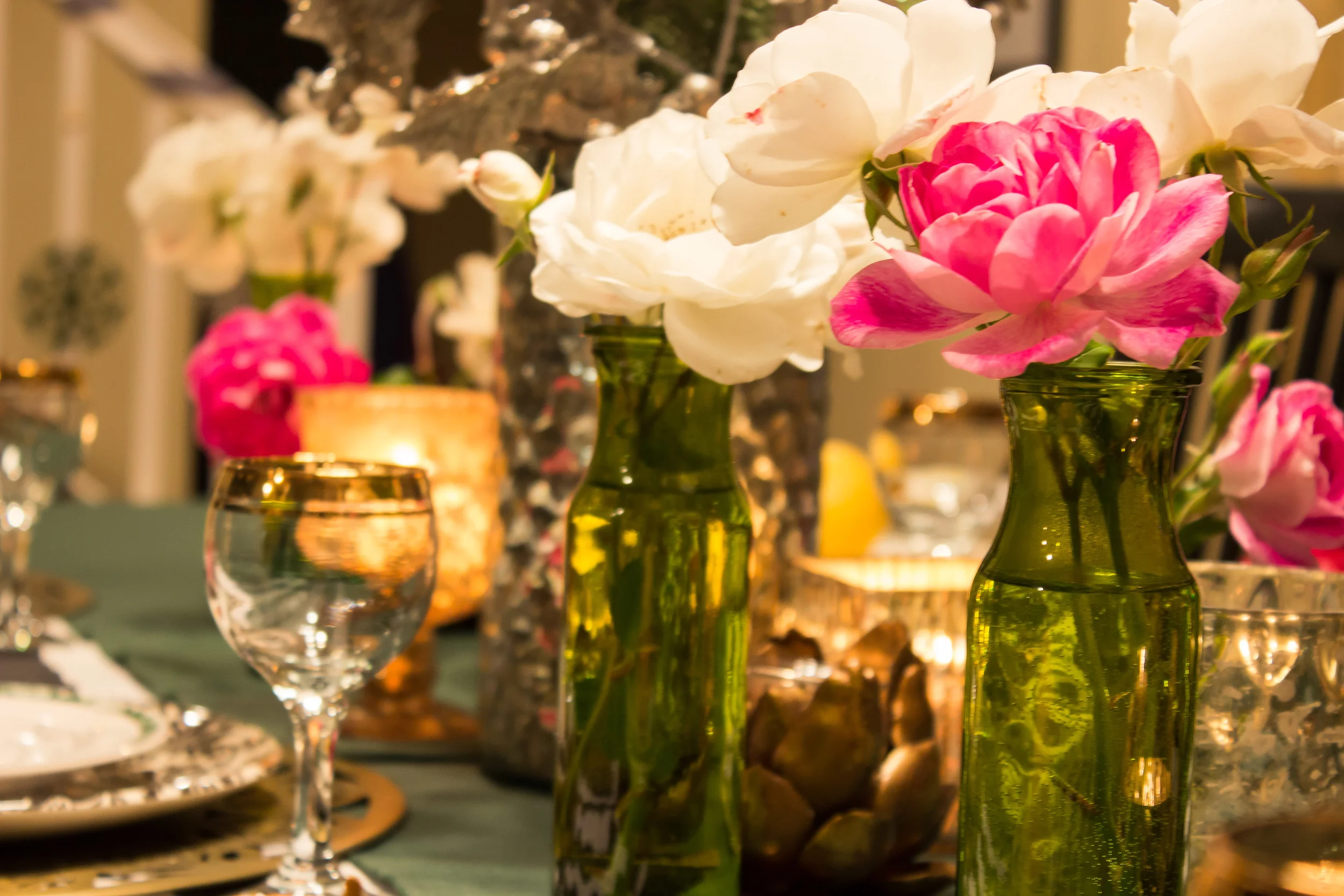 9. get creative. you can add to anything on your table, or even decorate your chairs with wreaths, ribbons ornaments. don't be afraid to view things differently- you can pull something off the wall to use as your centerpiece, use dishtowels as napkins, wrap your silverware in a thousand different ways. once everything comes together, no one will second-guess you.